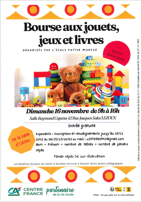 Bourse aux jouets le 16/11 Salle Raymond Capetta20 octobre 2025/dans LEZ'ANIMATIONS /par Sandrine Feralaffiche BOURSE AUX JOUETS https://www.lezoux.fr/wp-content/uploads/2025/10/Capture-2.png 648 454 Sandrine Feral https://www.lezoux.fr/wp-content/uploads/2017/09/logo-petit.jpg Sandrine Feral2025-10-20 11:24:332025-10-20 11:32:14Bourse aux jouets le 16/11 Salle Raymond Capetta
