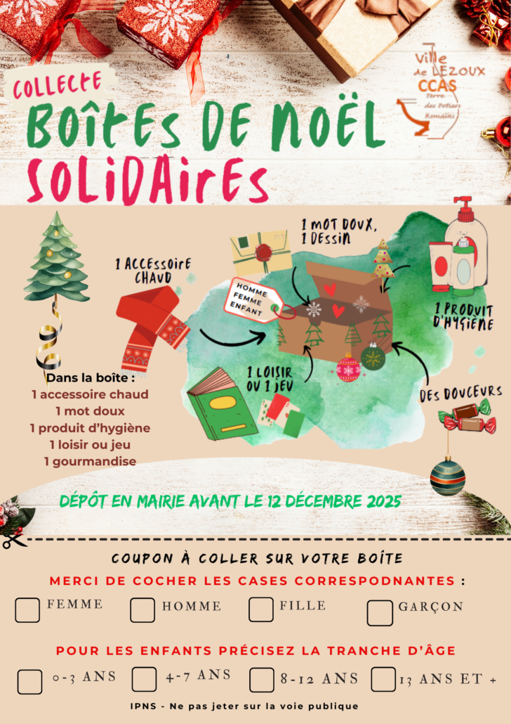 Collecte Boîtes de Noël jusqu’au 12/12 en Mairie28 octobre 2025/dans ACTION SOCIALE, LEZ'ACTUS /par Sandrine Feral https://www.lezoux.fr/wp-content/uploads/2025/10/OPERATION-Boite-de-Noel-1.png 2000 1414 Sandrine Feral https://www.lezoux.fr/wp-content/uploads/2017/09/logo-petit.jpg Sandrine Feral2025-10-28 15:45:402025-10-28 15:46:05Collecte Boîtes de Noël jusqu’au 12/12 en Mairie